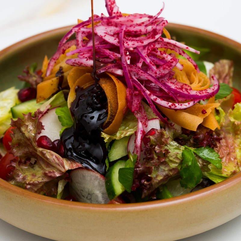 (307 سعرة حرارية)خضروات طازجة ,خبز محمحص ,دبس الرمان