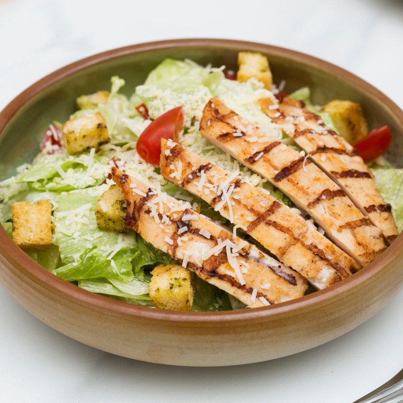(560 سعرة حرارية)سلطة السيزر المميزة تقدم بالدجاج المشوي والجبن البارميزان