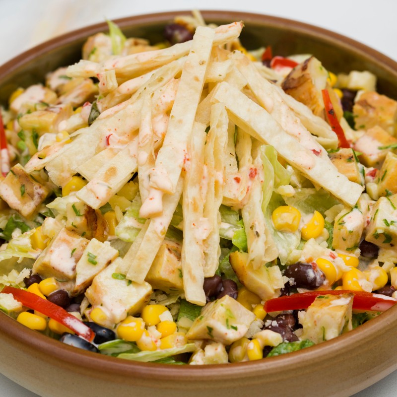 (456 سعرة حرارية)السلطة المكسيكية تقدم بالدجاج والخضروات المكسيكية وخبز التورتيلا