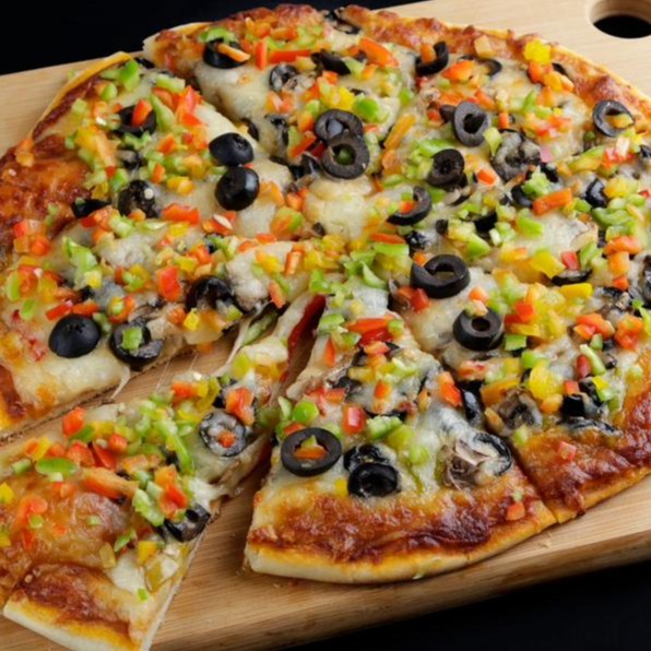 (1000 سعرة حرارية)الخضروات المشكله مع عجينة البيتزا الغنية بالطماطم الايطالية والاعشاب العطرية