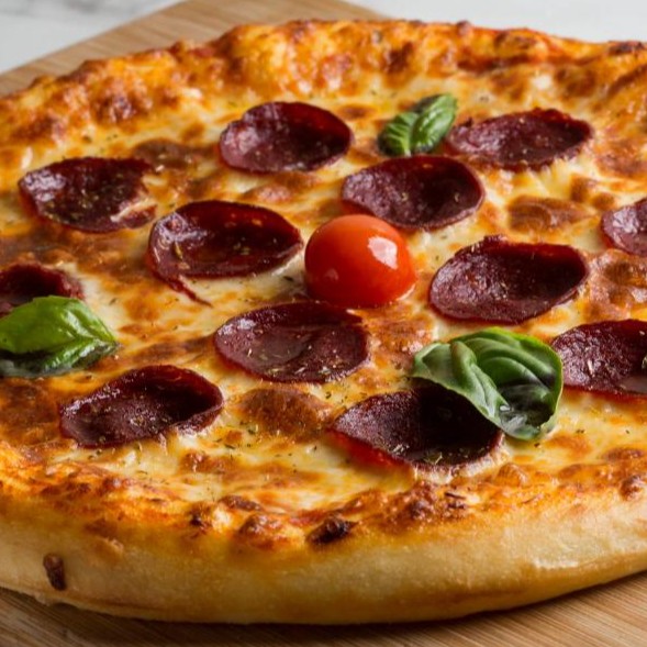 (1400 سعرة حرارية)عجينة البيتزا الغنية مع شرائح البيبروني الفاخر وجبن الموتزريلا وعطر الريحان