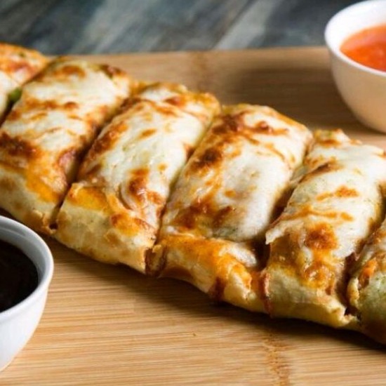 (1390 سعرة حرارية)الدجاج المقلي ومتبل بعناية مع صوص البيتزا وجبن الموتزريلا وصوص الداينمت الشهير
