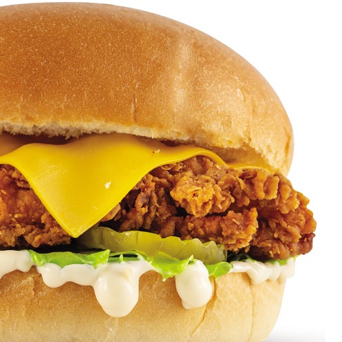 برجر شرائح الدجاج المقرمش بالجبن للاطفال يقدم مع بطاطس فرايز