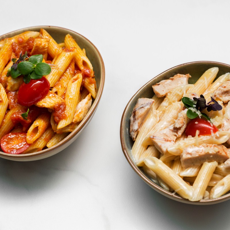 (290 سعرة حرارية)اختياركم الباستا المفضلة لدي الأطفال بالصوص الاحمر او الابيض بقطع الدجاج