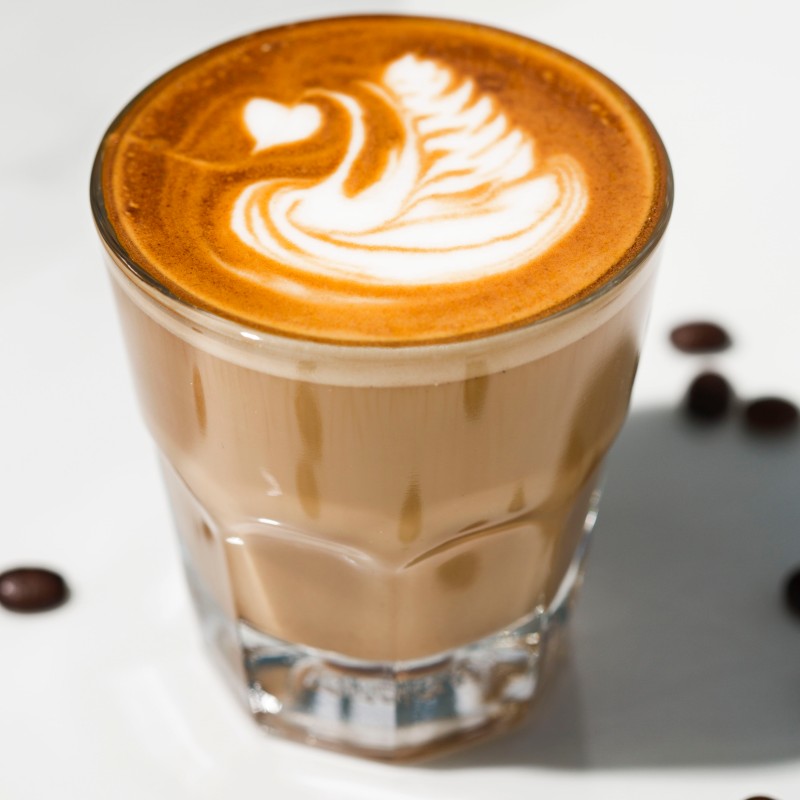 (116 سعرة حرارية)شوت إسبريسو، حليب على البخار وطبقة نهائية رقيقة من الحليب الرغوي في الأعلى