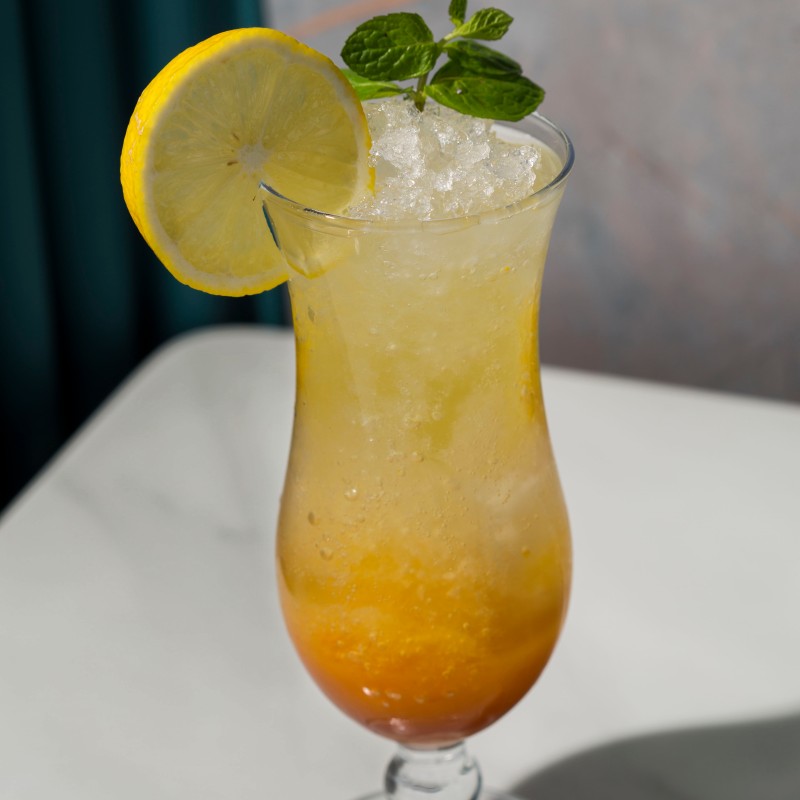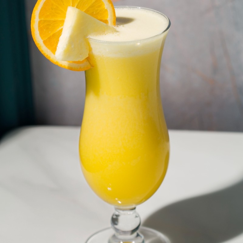 (120 سعرة حرارية)عصير أناناس، عصير برتقال، ثلج، أناناس وشرائح برتقال.